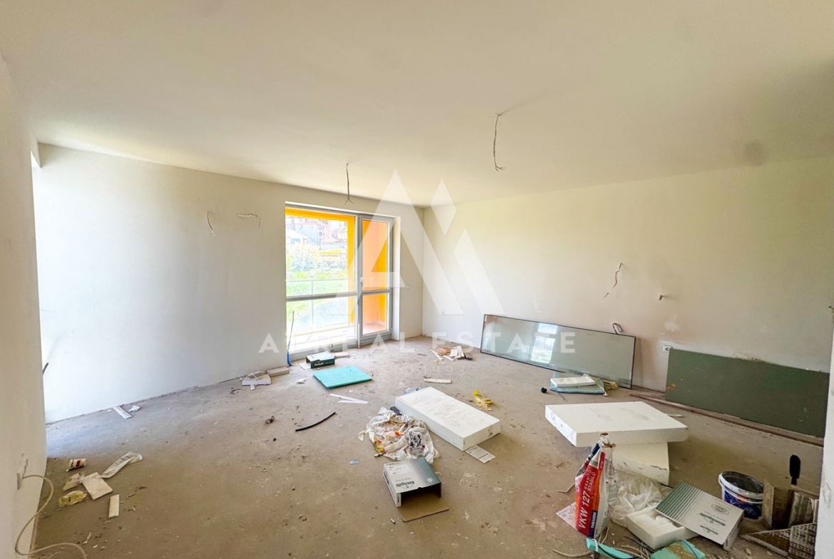 • The apartment is handed over with plaster and screed, with installed sockets and switches, a solid entrance door, and 7-chamber PVC windows with triple glazing
