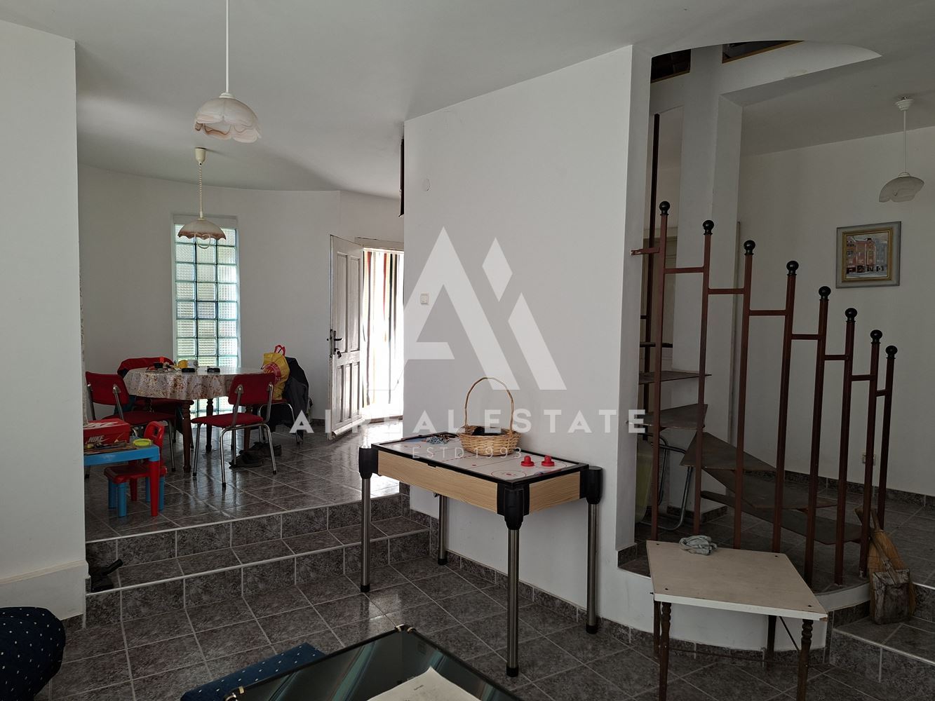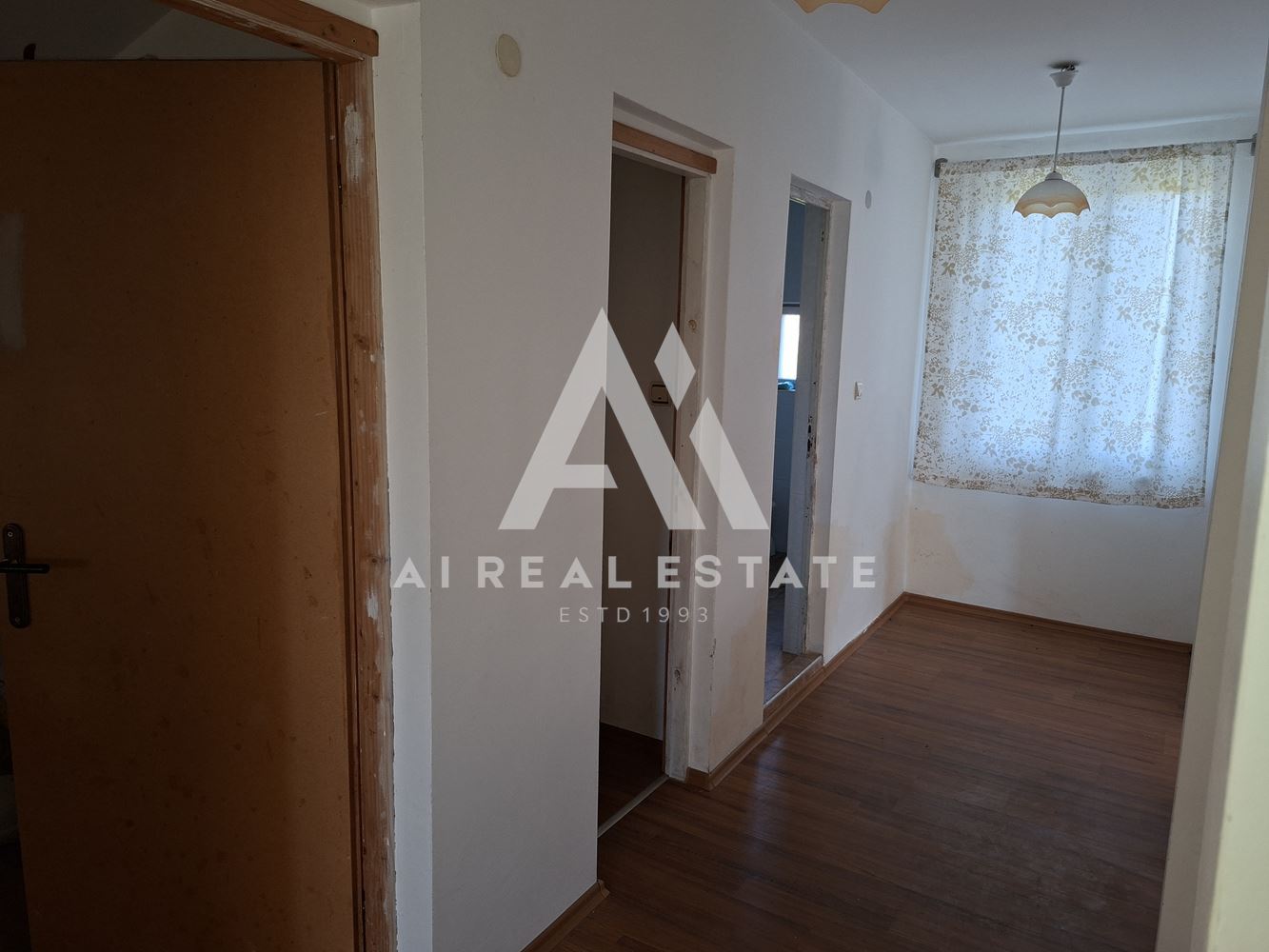 Entrance hall, kitchen with dining area, living room, bathroom, laundry room and entrance to the basement.