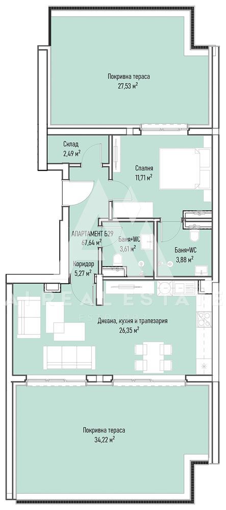 • Покривна тераса: 34.22кв.м.
