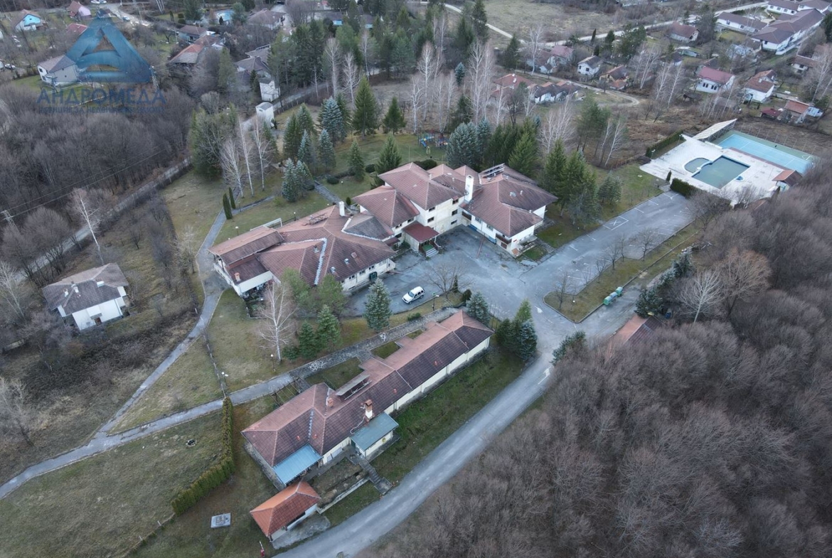 Представяме на Вашето внимание работещ хотел с басейн и панорама към ‘Стара планина’. Хотелът е разположен в гр.Априлци с отлична панорама към връх Ботев и околността. Освен с гледката хотела може да се отличи с отличната база, ресторант с веранда, помещения за йога и фитнес, разнообразни забавления за гостите – отопляем басейн – голям и малък, шезлонги и чадъри, игрища, зелени площи, детска площадка и др. Хотелът се намира на спокойно място, без трафик, имота е последен във високата част на вилна и хотелска зона, на отстояние от другите сгради поради голямата площ на собственият терен от общо 18683 кв.м.(Основен терен 13218 кв.м. и допълнителен терен 5465 кв.м.). Имота е отворен целогодишно и предлага удобства и почивка през всеки сезон. Настоящата оферта е целия терен, заедно с основна сграда с РЗП около 3005 кв.м., включваща спалните помещения – 20 апартамента и 24 стаи, терен с басейни и игрища, ресторант, зала за йога, кухня, котелно и др. помещения и имот изграден като апартхотел със самостоятелно функционално обекти с ЗП от около 250 кв.м. и проект за разширение. Имота е изцяло реновиран и поддържан (с дребни забележки след зимния период), захранен е с ГАЗ, напълно отопляем, прилежащи собствени паркинг площи, дори малка дива горичка влизаща в поземления имот. В имота има изградени слънчеви колектори с мощност достатъчна за захранване на хотела и другите помещения попадащи в дворното място при подходящи метеорологични условия с възможност за надграждане и разширяване. За повече информация свържете се с нас или поискайте оглед. Посочената в офертата цена е без ДДС и подлежи на договаряне ! Референтен номер: 2923 We present to your attention a working hotel with a pool and a view of Stara Planina. The hotel is located in the town of Apriltsi with an excellent view of Mount Botev and the surrounding area. In addition to the view, the hotel can be distinguished by its excellent base, restaurant with veranda, yoga and fitness rooms, various entertainment for guests – heated swimming pool – large and small, sunbeds and umbrellas, playgrounds, green areas, children’s playground, etc. The hotel is located in a quiet place, without traffic, the property is the last in the high part of the villa and hotel area, at a distance from other buildings due to the large area of its own land of a total of 18683 sq.m. (Main land 13218 sq.m. and additional terrain 5465 sq.m.). The property is open year-round and offers amenities and relaxation in every season. The current offer is the entire site, together with a main building with a built-up area of about 3005 sq.m., including the sleeping quarters – 20 apartments and 24 rooms, a site with pools and playgrounds, a restaurant, a yoga room, a kitchen, a boiler room, etc. premises and a property built as an aparthotel with independent functional facilities with a total area of about 250 sq.m. and expansion project. The property has been completely renovated and maintained (with minor remarks after the winter period), it is powered by GAS, fully heated, adjoining private parking areas, even a small wild grove entering the property. The property has built-in solar collectors with power sufficient to power the hotel and other premises falling in the yard under suitable weather conditions with the possibility of upgrading and expanding. For more information contact us or request a viewing. The price indicated in the offer is without VAT and is subject to negotiation! Reference number: 2923 !