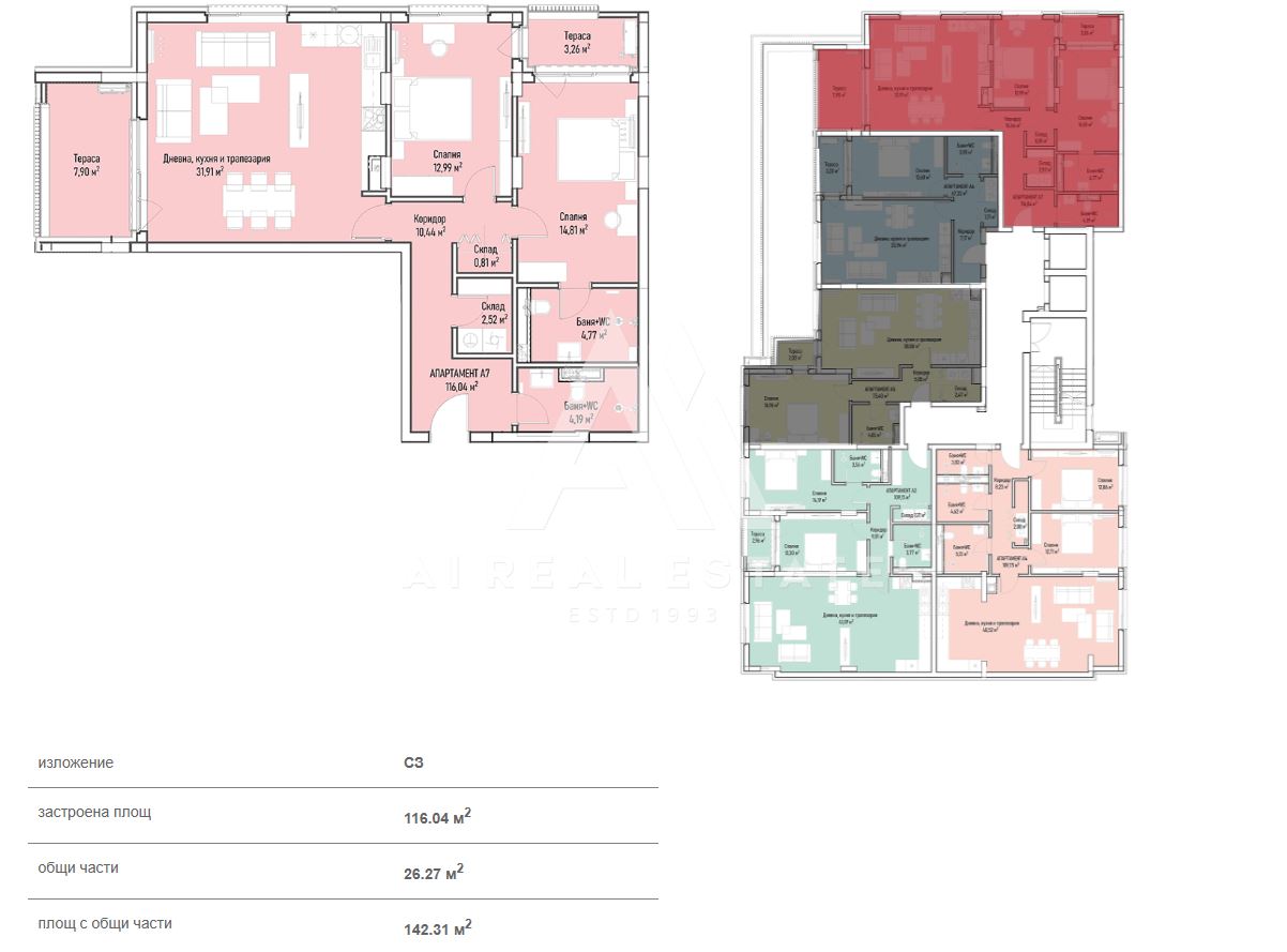 - Обща площ: 142.31 кв.м.,