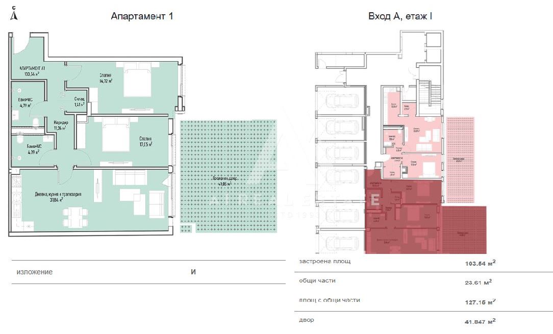 - Двор: 41.85 кв.м. (включен в цената, но не в общата квадратура)