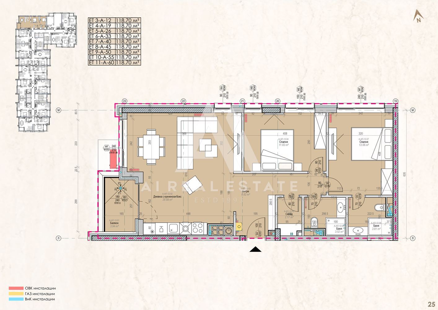 - Обща площ: 118,70 кв.м.,